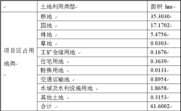 ¡¡¡¡±í1 Ïà¹úË´¢Æø¿âÏîĿռÓõØÀàÃ÷ϸ±í