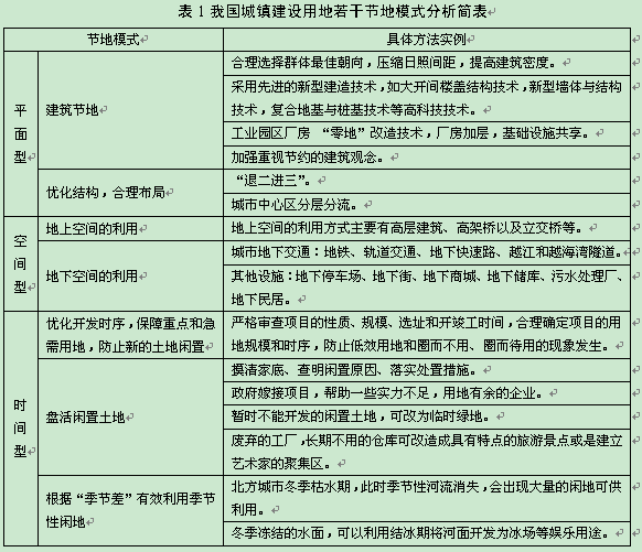 ¡¡¡¡Ä£Ê½Êǽâ¾öÄ³Ò»ÌØ¶¨ÎÊÌâµÄÒ»ÖÖ¿ÆÑ§Ë¼Î¬·½·¨¡£³ÇÕò½¨ÉèÓõؽڵØÄ£Ê½£¬Ò²¾ÍÊǽâ¾ö³ÇÕò½¨ÉèÖеÄÍÁµØ×ÊÔ´²»×ãºÍ¿Õ¼äÀ©Õ¹ÊÜÏÞÎÊÌ⡢ʵÏÖ³ÇÕò½¨Éè¿ÆÑ§·¢Õ¹µÄÊֶΡ¢·½Ê½ºÍ;¾¶µÄÀíÂÛ¸ÅÀ¨Óë×ܽᡣ¸ù¾Ý½ÚµØµÄ²àÖØµãºÍ½Ç¶ÈµÄ²»Í¬£¬¿É½«ÎÒ¹ú³ÇÕò½¨ÉèÓõصĽڵØÄ£Ê½×ܽáºÍ¹éÄÉΪ3ÖÖģʽ£¬¼´Æ½Ãæ½ÚµØÐÍ£¨ÏòµØÃæÒªÃܶȣ©¡¢Á¢Ì忪·¢½ÚµØÐÍ£¨ÏòÁ¢Ìå¿Õ¼äÒªµØ£¬ÊµÐеØÉϵØÏÂÁ¢ÌåÀûÓ㩺Íʱ¼ä½ÚµØÐÍ£¨×¥ºÃ¿ª·¢Ê±Ðò£¬ÈÃÏеػîÆðÀ´£©£¬¹©¸÷µØÒòµØÖÆÒ˵ؽøÐнڵØÐͳÇÕò½¨Éèʱ½è¼øºÍ²Î¿¼£¬Èç±í1¡£