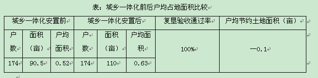 ¡¡¡¡ÕûÀí·ÖÉ¢µÄÅ©´å¾ÓÃñµã£¬½¨Éè¸ß¼¯ÖеIJðǨ°²ÖÃÉçÇøÊÇÌÁÇÅÕò³ÇÏçÒ»Ì廯½¨ÉèµÄÖ÷Òª×ö·¨¡£ÌÁÇÅÕòÊÔͼͨ¹ý ¡°Ôö¼õ¹Ò¡±´ïµ½½ÚÔ¼¼¯Ô¼ÀûÓõÄÍÁµØµÄÄ¿µÄ£¬µ«ÊÂʵÉÏЧ¹û²»ÀíÏë¡£ÒÔÌÁÇÅÕò2012Äê¶È°²ÖõÄÌÁÇÅÕò½ð´åÔ·ÉçÇøÎªÀý£¬¹²Éæ¼°°²Öû§Êý366»§£¬Õ¬»ùµØÕûÀíÒÔºó¿É¸´¿Ñ×ÜÃæ»ý198Ķ£¬°´ÕÕÍêȫͨ¹ý¸´¿ÑÑéÊÕ¼ÆË㣬¸´¿Ñºó¿ÉÐÂÔö½¨ÉèÓõØ×ÜÃæ»ý198Ķ£»2012Äêµ×¿¢¹¤µÄ½ð´åÔ·Ð¡Çø¹²Õ¼µØÃæ»ý235Ķ£¬¿É°²ÖÃÈËÔ±366»§¡£¼ÆËã³ÇÏçÒ»Ì廯ǰºó»§¾ùÕ¼µØÃæ»ý·¢ÏÖ£¬ÔÀ´Õ¬»ùµØ»§¾ùÕ¼µØ0.54Ķ£¬°²Öú󻧾ùÕ¼µØ0.64Ķ£¬ºóÕß±ÈǰÕßÿ»§¶àÕ¼ÓÃ0.1Ķ£¬Î¥±³Á˽ÚÔ¼ÓõصijõÖÔ£¬ÈçϱíËùʾ£º