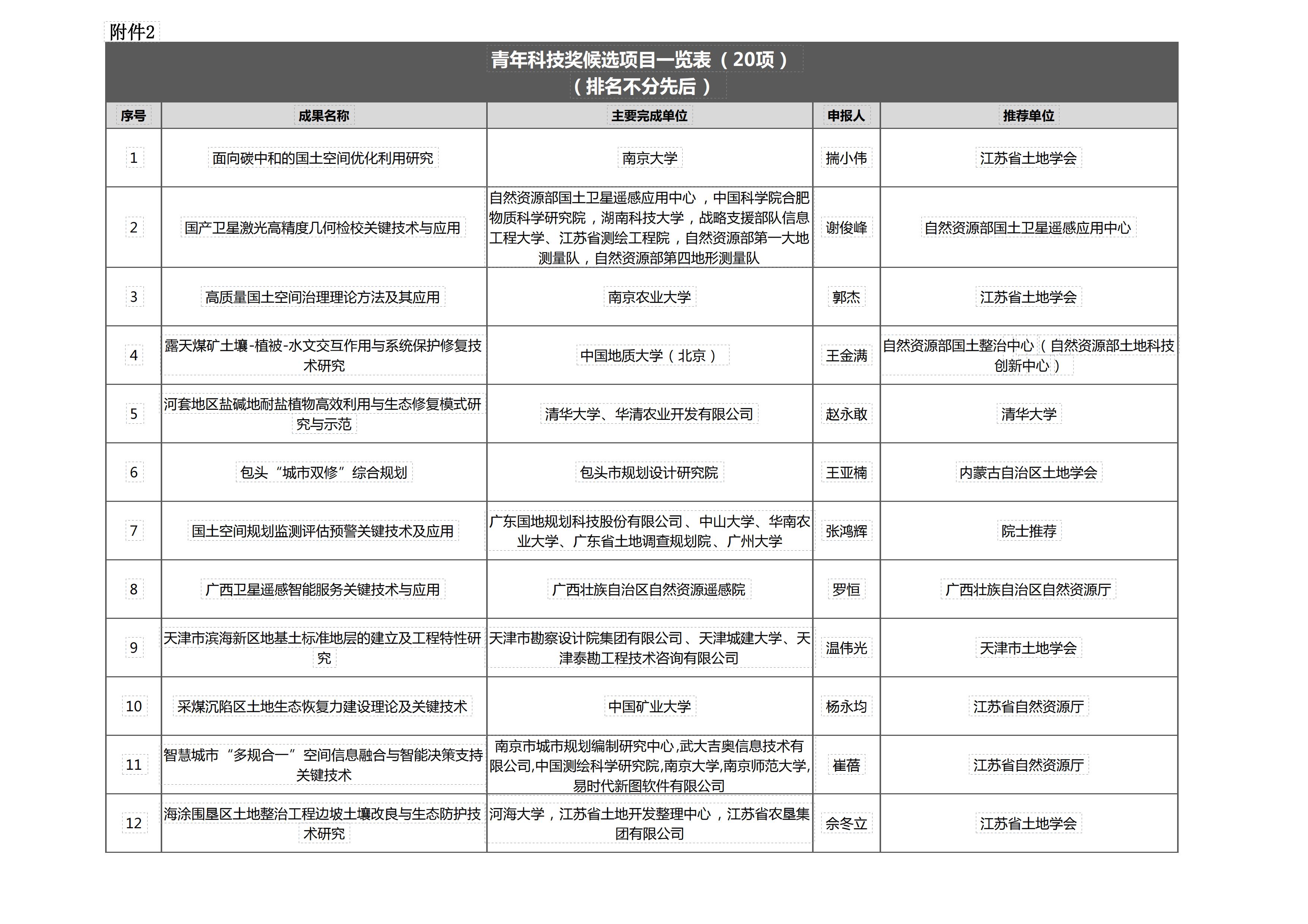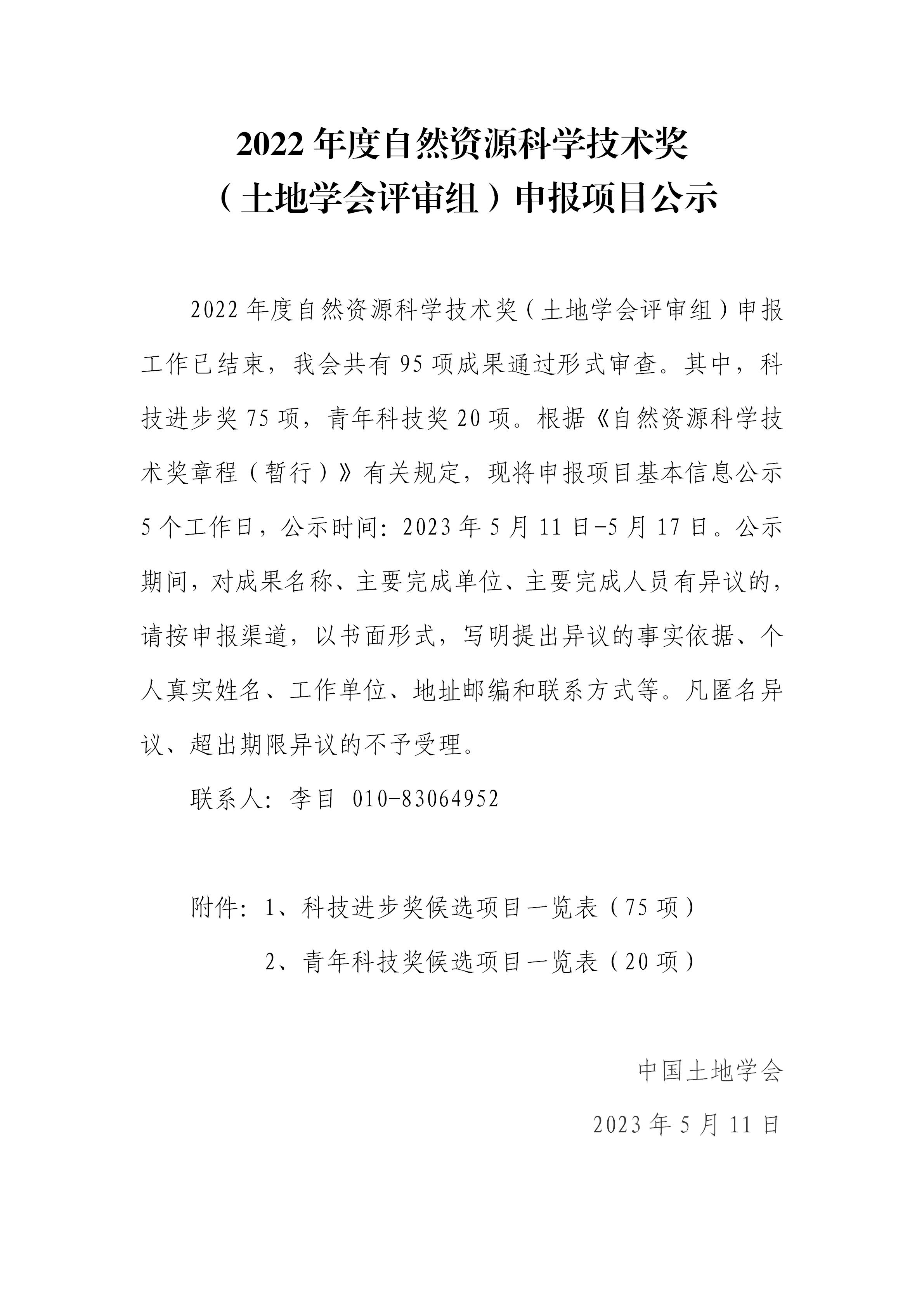 公示|2022年度自然资源科学技术奖(土地学会评审组)申报项目公示