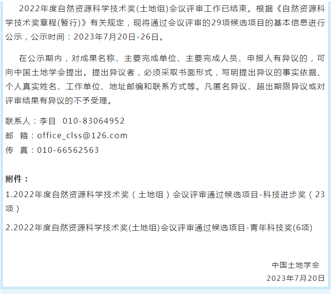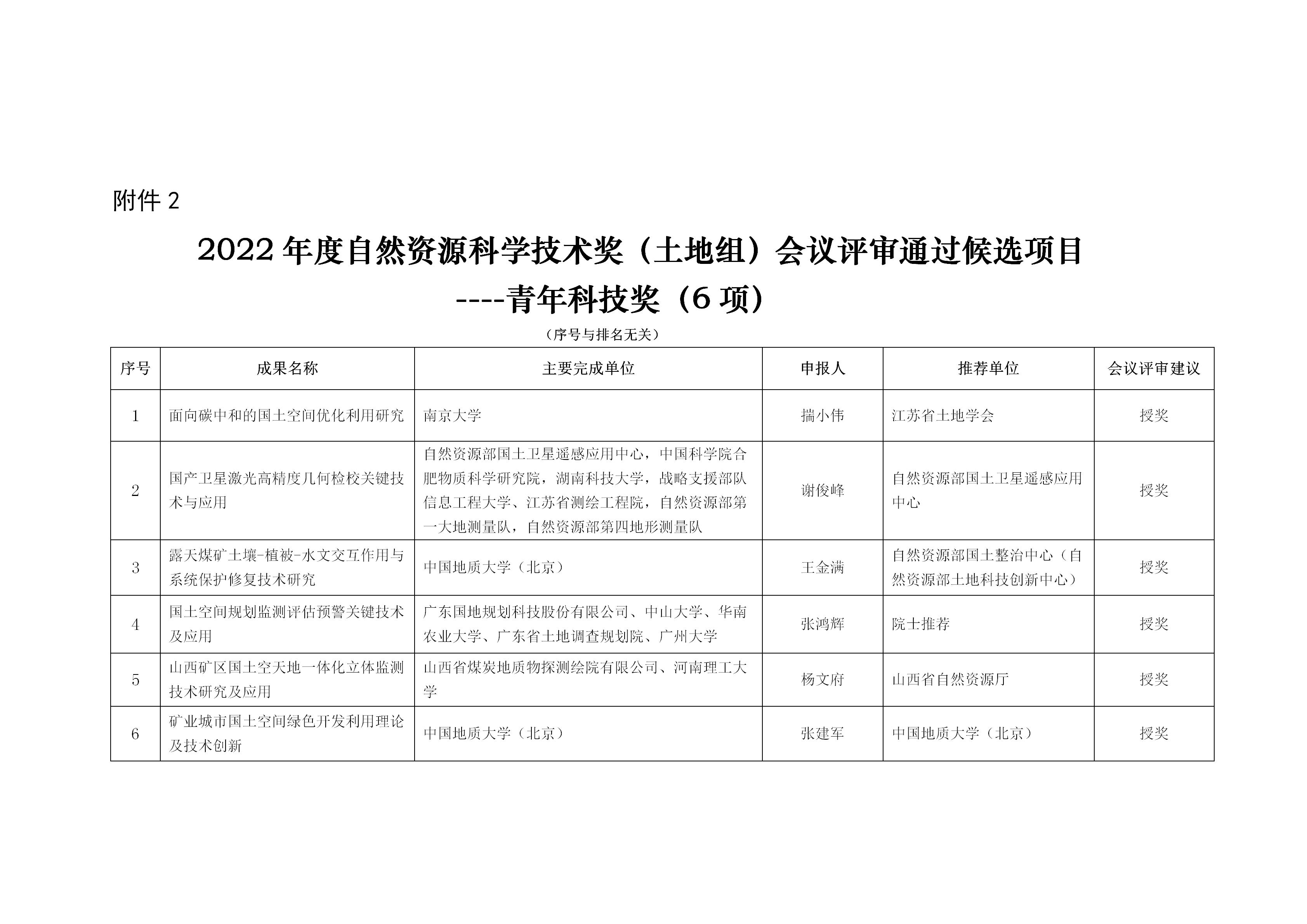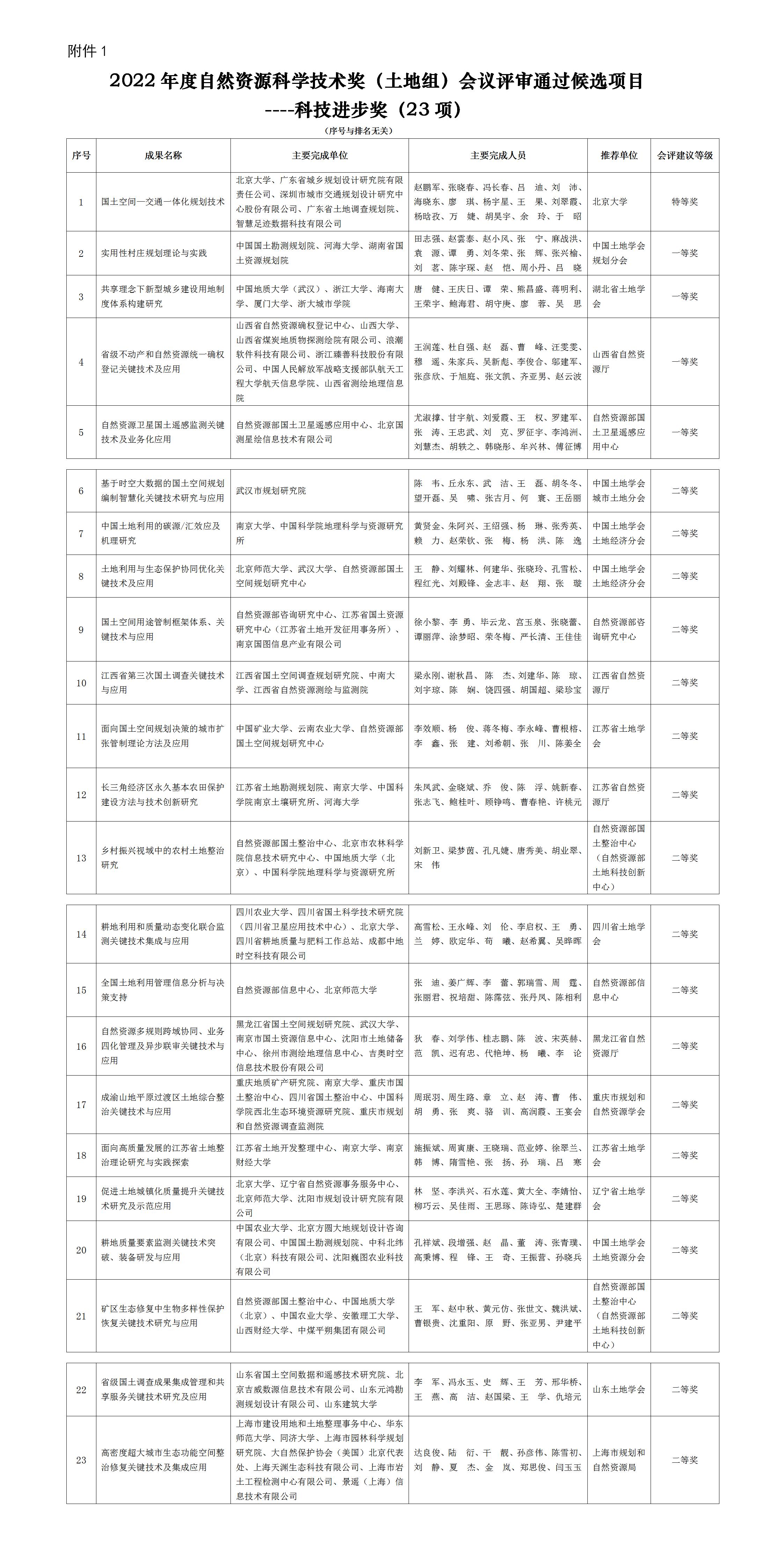 公示|2022年度自然资源科学技术奖(土地组)会议评审结果公示