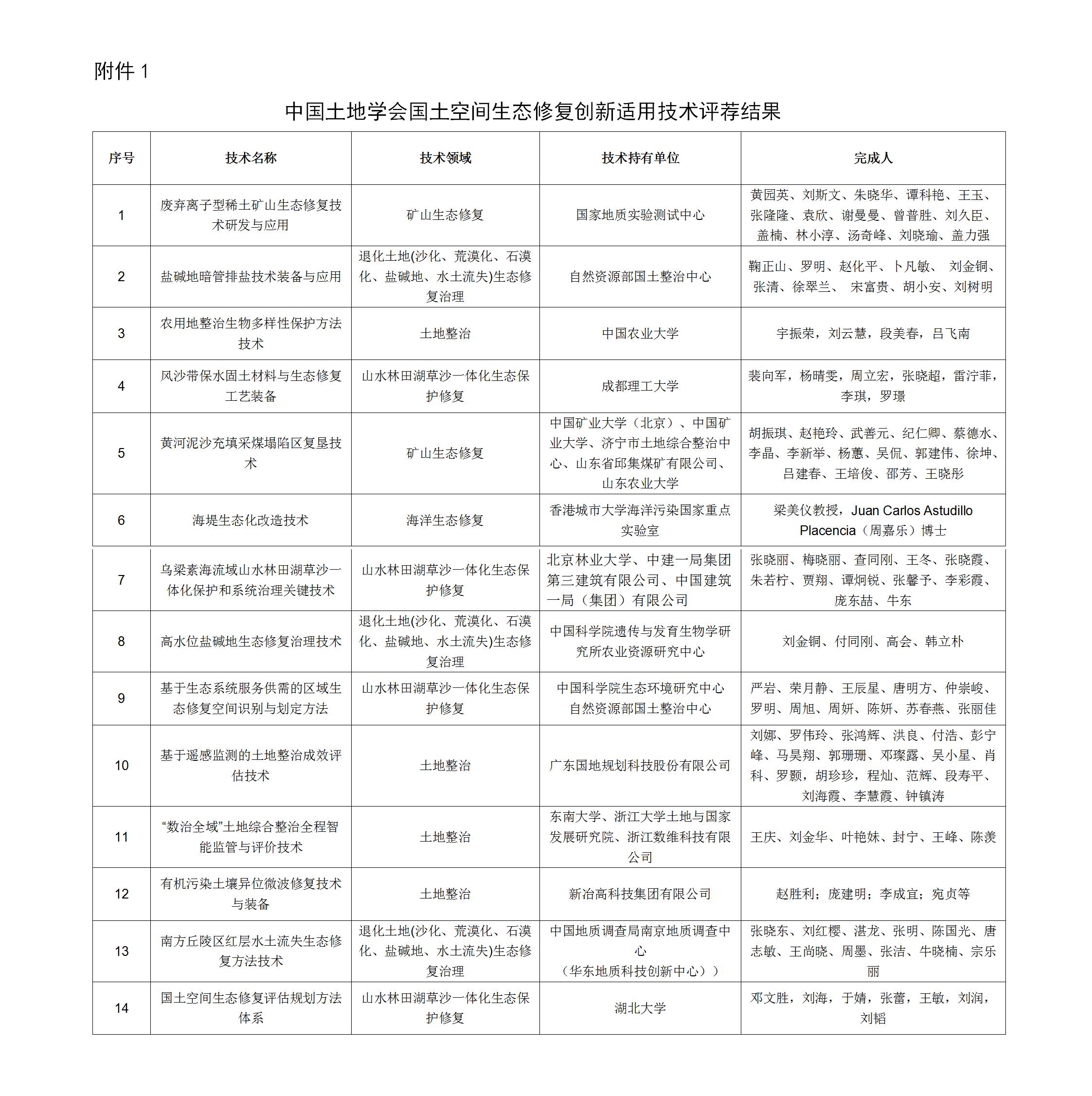 根据《自然资源部办公厅关于开展2023年度国土空间生态修复创新适用技术推广名录征集推荐工作的函》有关要求,中国土地学会组织对申报的国土空间生态修复创新适用技术材料进行了评荐。现对评荐结果进行公示,公示期5个工作日,公示时间:2023年9月28日至10月10日。公示无异议的,将向自然资源部推荐。