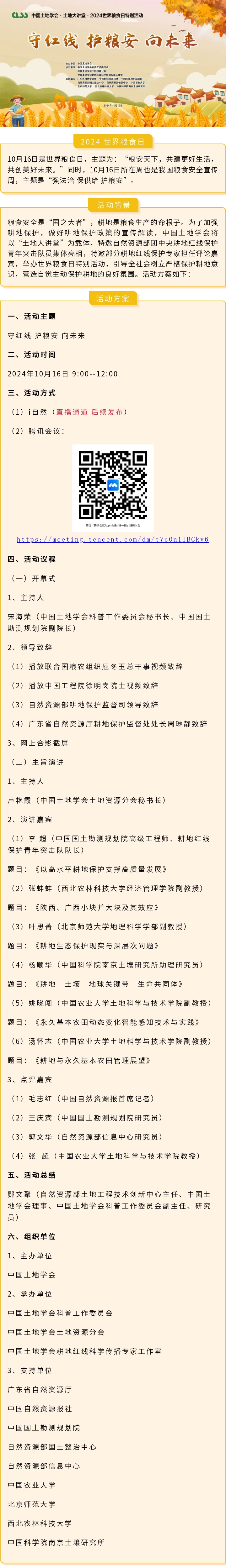 通知|中国土地学会·土地大讲堂·2024世界粮食日特别活动通知