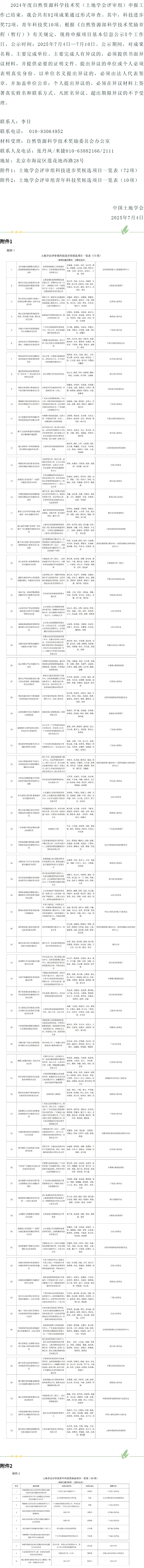 公示|2024年度自然资源科学技术奖(土地学会评审组)申报项目公示