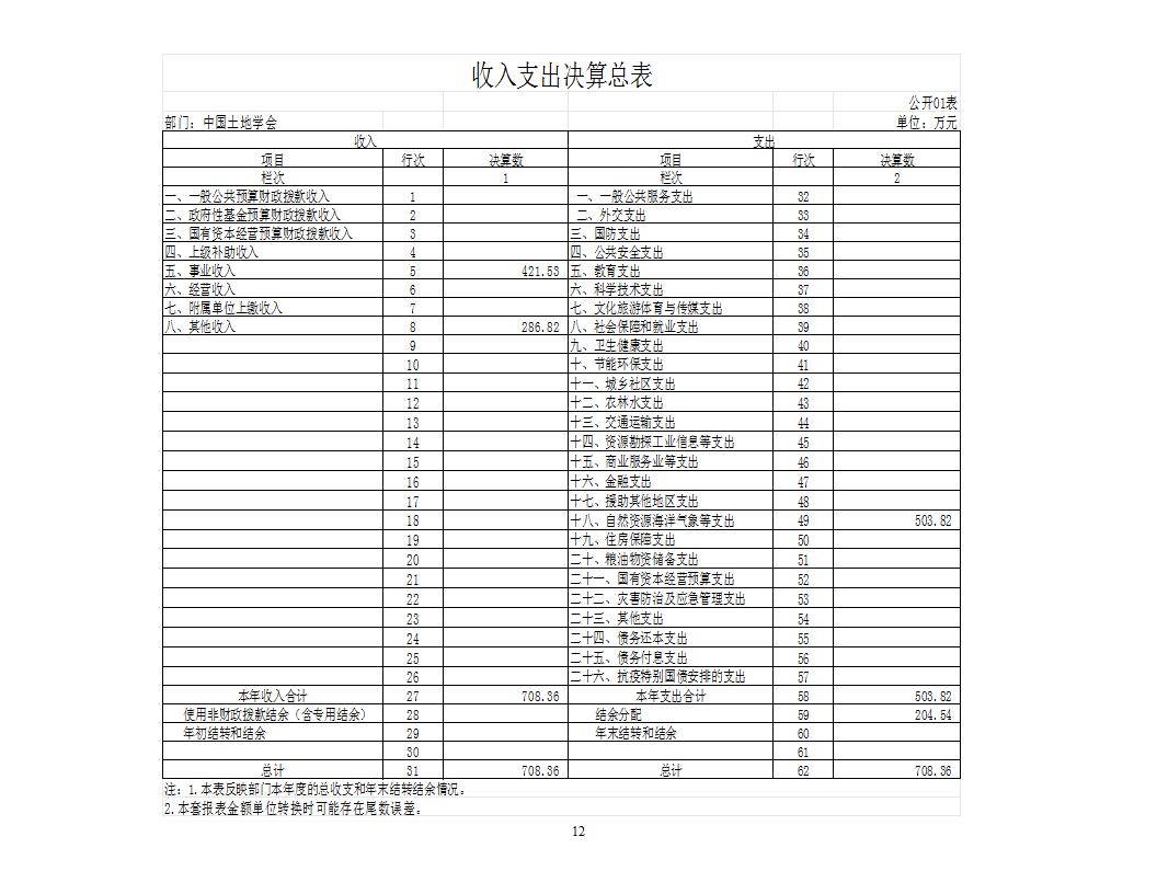2024年度中国土地学会决算