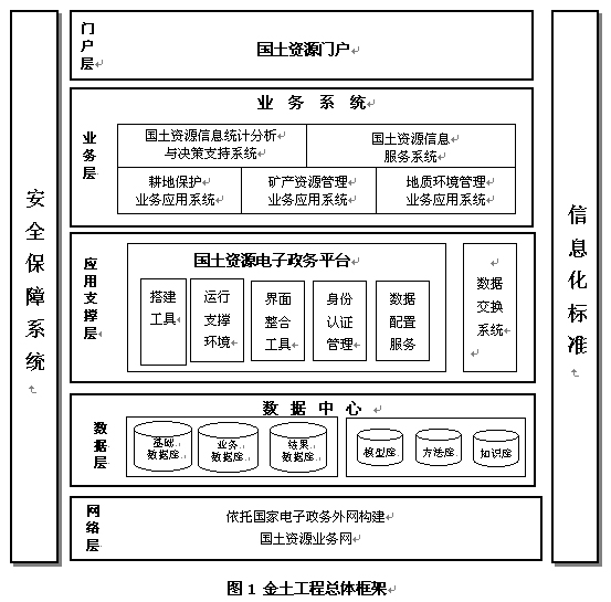 ¡¡¡¡½ðÍÁ¹¤³Ì½¨ÉèµÄ×ÜÌå¿ò¼ÜÊÇ,ÒÔ¹úÍÁ×ÊÔ´¸÷ÀàÊý¾Ý¿âΪ»ù´¡,ÒÔ¹úÍÁ×ÊÔ´ÐÅÏ¢ÍøÂçΪÒÀÍÐ,ÒÔ±ê×¼¡¢ÖƶȺͰ²È«ÌåϵΪ±£ÕÏ,ÒÔµØÕþ¡¢¿óÕþ¡¢µØÖÊ»·¾³µÈÖ÷Òª¹ÜÀíÒµÎñÁ÷³ÌÓÅ»¯ÎªÖ÷Ïß,ÒÔÖ§³Å¹úÍÁ×ÊÔ´¹ÜÀí¾ö²ßΪºËÐÄ,Ðγɻ¥Áª»¥Í¨¡¢¹á´©ÉÏϵÄÕþÎñ¹ÜÀí¡¢¾ö²ßÖ§³ÖºÍÉç»á·þÎñÐÅÏ¢»¯Ìåϵ(ͼ1)¡£