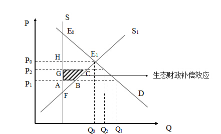 »ùÓÚÉÏÊöÁ½²¿·ÖµÄ·ÖÎö£¬ÓÉÓÚÅ©µØ³ÇÊÐÁ÷תµÄ¸ºÍⲿÐÔÒÔ¼°Å©µØÉú̬ϵͳ·þÎñ¼ÛÖµµÄºöÂÔµ¼ÖÂÁ÷×ªÇøÓòÏà¹ØÀûÒæÖ÷ÌåÔÚÅ©µØÔÚ³ÇÊÐÁ÷ת¹ý³ÌÖд¦ÓÚÁÓÊÆµØÎ»£¬Å©µØÉú̬¸£ìíËðʧµÃ²»µ½²¹³¥¡£Òò´Ë£¬¿¼Âǵ½Å©µØÉú̬ϵͳ·þÎñ¼ÛÖµµÄÖØÒªÐÔ£¬Õþ¸®¿ÉÒÔ²ÉÈ¡Éú̬²ÆÕþ²¹Ìù×÷ΪÃÖ²¹ÀûÒæÏà¹ØÖ÷ÌåµÄ¸£ìíËðʧµÄ·½Ê½Ö®Ò»¡£Èçͼ4Ëùʾ£¬ÓÉÓÚÍÁµØ×ÊÔ´µÄϡȱÐÔ£¬Å©µØµÄ¶Ô½¨ÉèÓõصĹ©¸øÇúÏßΪS£¬ÓÉÓÚ³¤ÆÚÍÁµØ¹©¸ø¾ßÓÐÒ»¶¨µÄµ¯ÐÔ£¬¹©¸øÇúÏßÓÉSÏòÓÒÆ«ÎªS1£¬ S1Å©µØ¹©¸øÇúÏßÓ뽨ÉèÓõØÐèÇóÇúÏßDÔÚE1µãʵÏÖÁ˾ùºâ£¬P0ΪÍÁµØ¾ùºâ¼Û¸ñ£¬Q0ΪũµØ³ÇÊÐÁ÷ת¾ùºâÊýÁ¿£¬¡÷E0E1FÊÇÔÚÅ©µØ³ÇÊÐÁ÷תºóµÃµ½µÄ×ÜÔöÖµÊÕÒæ£¬¡÷E1FHÊôÓÚÁ÷×ªÇøÓòÀûÒæÖ÷ÌåÀíÂÛÉϵÄÔöÖµÊÕÒæ¡£µ«Êǹú¼ÒÒÔµÍÓÚ¾ùºâÍÁµØ¼Û¸ñµÄP1Õ÷ÊÕ»òÕ÷ÓÃÅ©µØ£¬Á÷×ªÇøÓòʵ¼ÊµÃµ½µÄÔöÖµÊÕÒæÎª¡÷ABF£¬ÌÝÐÎABE1HÔòÊÇÏà¹ØÀûÒæÖ÷ÌåµÄ¸£ìíËðʧ¡£¼ÙÉèÕþ¸®ÒÔÿµ¥Î»ÊýÁ¿µÄÅ©µØtrԪǮ×÷Ϊ¶ÔÁ÷×ªÇøÓòÏà¹ØÀûÒæÖ÷ÌåµÄÉú̬²¹Ìù£¬Å©µØÊµ¼ÊµÄÁ÷ת¼Û¸ñΪP2=P1+tr£¬Éú̬²ÆÕþ²¹ÌùºóµÄÁ÷×ªÇøÓòÔöÖµÊÕÒæÎª¡÷CFG£¬ÔòÌÝÐÎABCGΪÁ÷×ªÇøÓòÀûÒæÏà¹ØÖ÷Ì帣ìíµÃµ½µÄÉú̬²¹³¥£¬×ÜÌ帣ìíÒò´ËµÃµ½ÌáÉý¡£